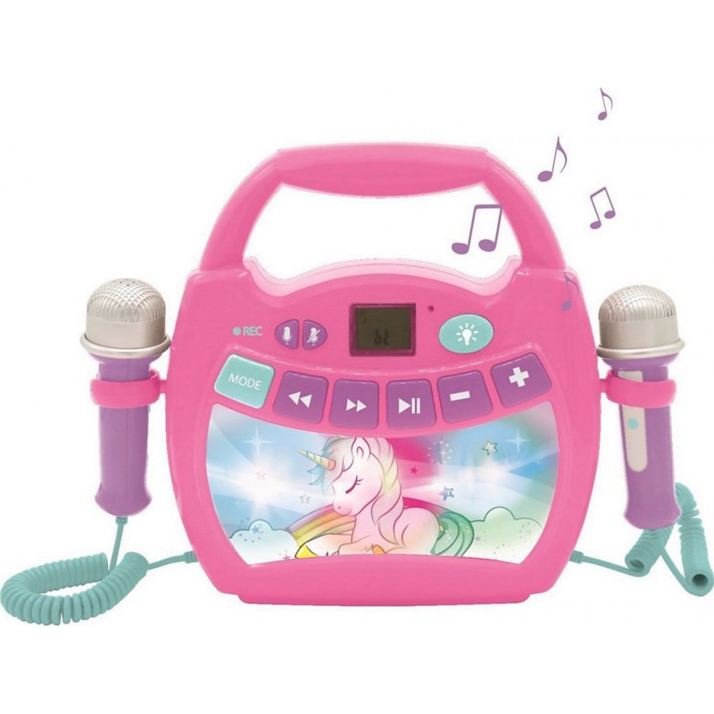 Karaoké Bluetooth Licorne Prise micro - Prise casque - Port USB Avec micro - Tuner: Pas de fonction radio Le : 2 micros inclus. Produit neuf dans son emballage d'origine bénéficiant de la garantie originale du fabricant. EAN 3380743091266.