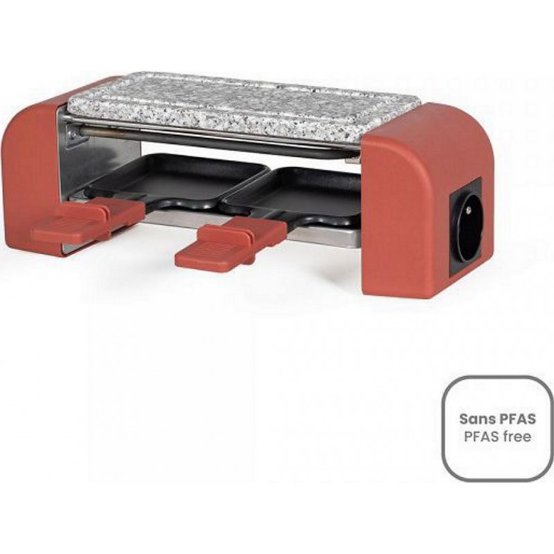 Rapide à chauffer et à cuire avec ses 450W de puissance, cet appareil combine raclette et pierrade pour des moments conviviaux à deux Possibilité de brancher jusqu’à 4 appareils entre eux pour une raclette allant jusqu’à 8 personnes Facile à utiliser et à nettoyer grâce aux différents éléments amovibles Description - 2 personnes - Puissance 450W - Possibilité de brancher jusqu’à 4 appareils entre eux - Plateau amovible en granit - Surface de cuisson 20x10cm - Thermostat automatique - 2 spatules en bois et 2 caquelons avec revêtement antiadhésif sans PFAS - 4 pieds antidérapants - Bouton on/off. Produit neuf dans son emballage d'origine bénéficiant de la garantie originale du fabricant. EAN 3523930107412.