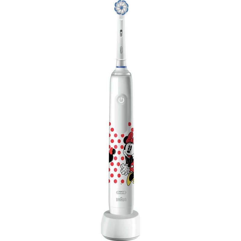 Brosse à dents électrique pro 3 juior Minnie HBOX 3D oscillo-rotations/pulsations - Protège les gencives grâce au CAPTEUR VISUEL 360? DE PRESSION SUR LES GENCIVES qui vous signale visiblement lorsque vous les brossez trop vigoureusement 9 900 mouvements/mn - 20 000 pulsations/mn - Brossette ronde ultra douce avec poils ultra-fins Vibre toutes les 30 secondes pour avertir votre enfant de changer la zone de brossage 1 brossette Fonctionne sur batterie - 2 modes de brossage : Propreté et Douceur Peut être utilisé avec l'application Disney Magic Timer gratuite d'Oral-B pour rendre le brossage encore plus amusant Contenu : 1 manche, 1 brossette Sensi Ultrathin, 1 chargeur. Produit neuf dans son emballage d'origine bénéficiant de la garantie originale du fabricant. EAN 4210201396123.