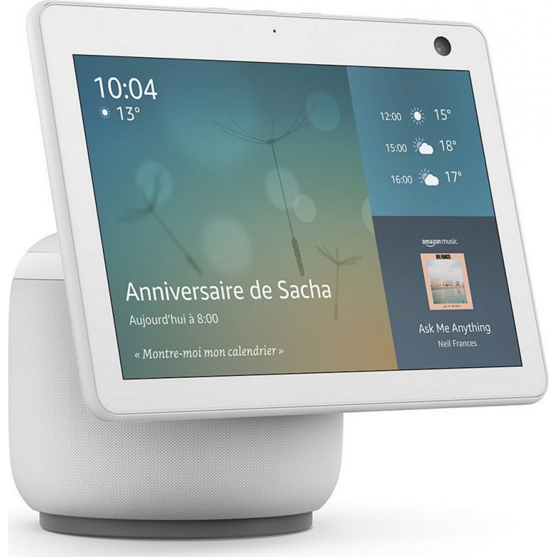 Assistant vocal - Intérieure - 3 hauts-parleurs HD - Bluetooth et Wi-Fi Ecran tactile 10" couleur - Pilotez vos objets connectés Le : Alexa peut vous aider à gérer votre journée en un coup d'oeil. Produit neuf dans son emballage d'origine bénéficiant de la garantie originale du fabricant. EAN 0840080542171.