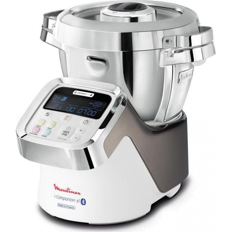 Voici un robot cuiseur multifonction qui sait vraiment tout faire: il fouette, pétrit, mélange, mais aussi cuit, mijote, rissole. Pour cela, il est doté d'un large bol métallique avec couvercle en verre et en métal, ainsi que de 7 accessoires dédiés pour réaliser facilement toutes vos préparations. En plus de ses performances polyvalentes, ce cuiseur Moulinex a un atout de premier plan: il se connecte à tout smartphone ou tablette et suit les indications de préparation en fonction de la recette choisie par l'intermédiaire de l'application dédiée. Vous pouvez ainsi lancer la recette directement depuis votre smartphone, puis suivre les étapes de la réalisation. Produit neuf dans son emballage d'origine bénéficiant de la garantie originale du fabricant. EAN 3016661151149.