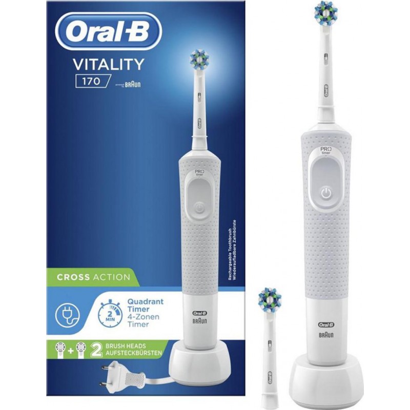 Il a été prouvé cliniquement que la brosse à dents électrique rechargeable Oral-B Vitality 170 Cross Action nettoie plus efficacement qu’une brosse à dents manuelle classique. Le design de la brossette CrossAction permet d’entourer chaque dent grâce aux poils positionnés à un angle de 16 degrés. Son action de nettoyage 2D associe oscillations et rotations pour une élimination de la plaque dentaire plus efficace par rapport à une brosse à dents manuelle classique. Le minuteur intégré au manche vous aide à respecter le temps de brossage de 2 minutes recommandé par les dentistes. Ce produit est conçu par Oral-B, la marque de brosse à dents la plus utilisée par les dentistes eux-mêmes dans le monde. Compatible avec les brossettes de rechange suivantes: CrossAction, 3D White, Sensi Ultrathin, Sensitive Clean, Precision Clean, FlossAction, TriZone, Dual Clean, Power Tip, Ortho Care. Produit neuf dans son emballage d'origine bénéficiant de la garantie originale du fabricant. EAN 4210201200925.